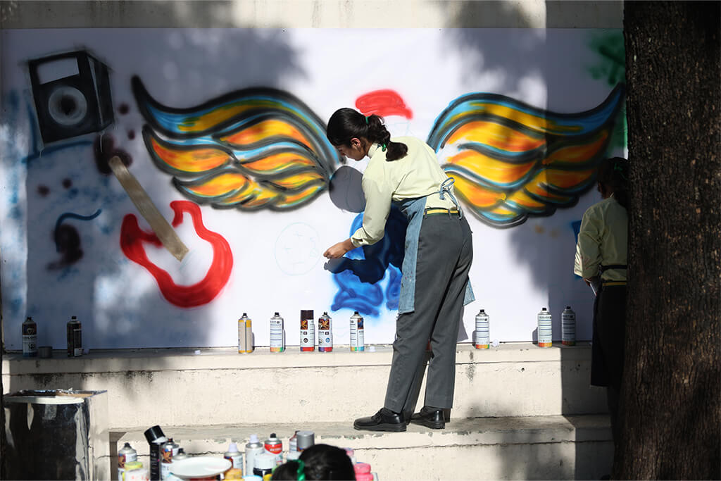 The opening ceremony began with a warm welcome by hosts Sanchit Batra and Deepanshi Joshi, followed by a prayer by Head Boy Rishabh Khandka and a graceful dance performance by Gaytree Rautela. The traditional lighting of the lamp marked the formal inauguration of the fest. Principal Mrs. Pallavi Gupta in her welcome address encouraged participants to showcase their talents with enthusiasm and declared the fest open.