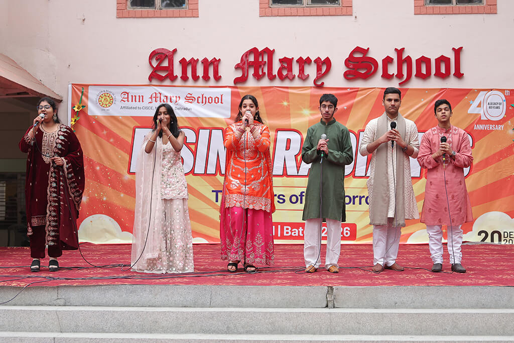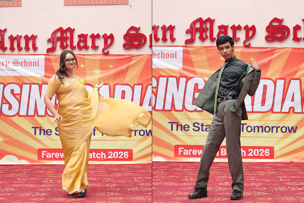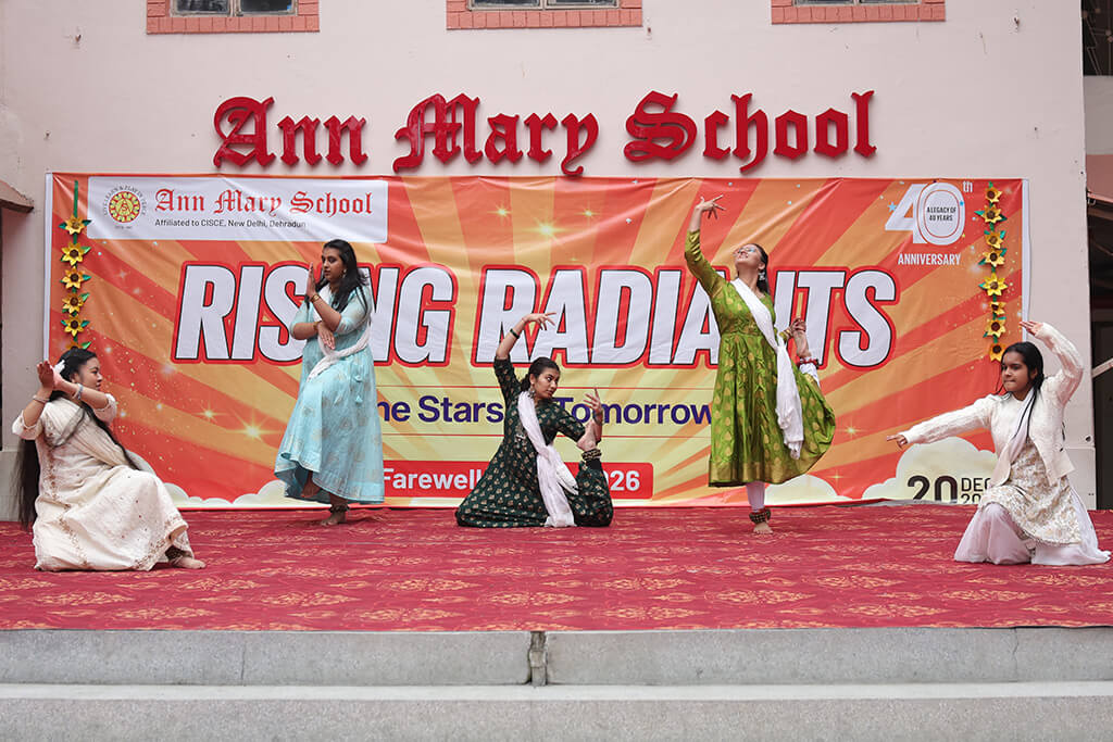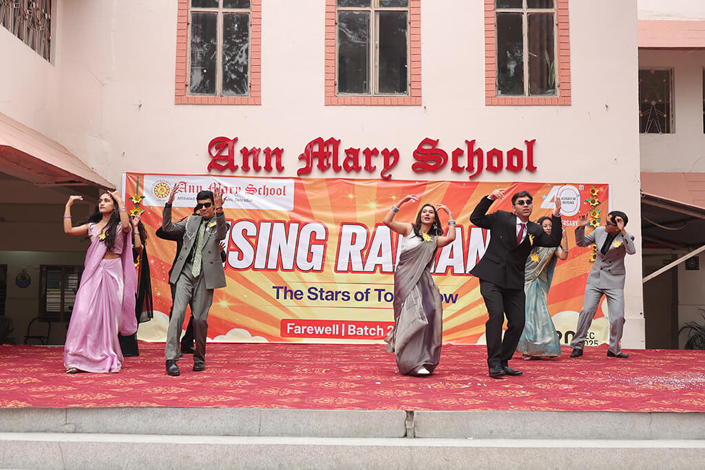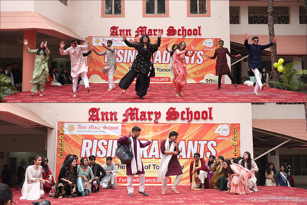 Ann Mary School organized a heartfelt farewell for its outgoing Class XII batch, aptly named “Rising Radiants,” on 20 December 2025. The event was graced by Secretary Shri Jitendra Joshi, Chairperson Mrs. Anuradha Joshi, Director Ms. Ankita Joshi, Principal Mrs. Pallavi Gupta, along with the school staff and students of Classes XI and XII.