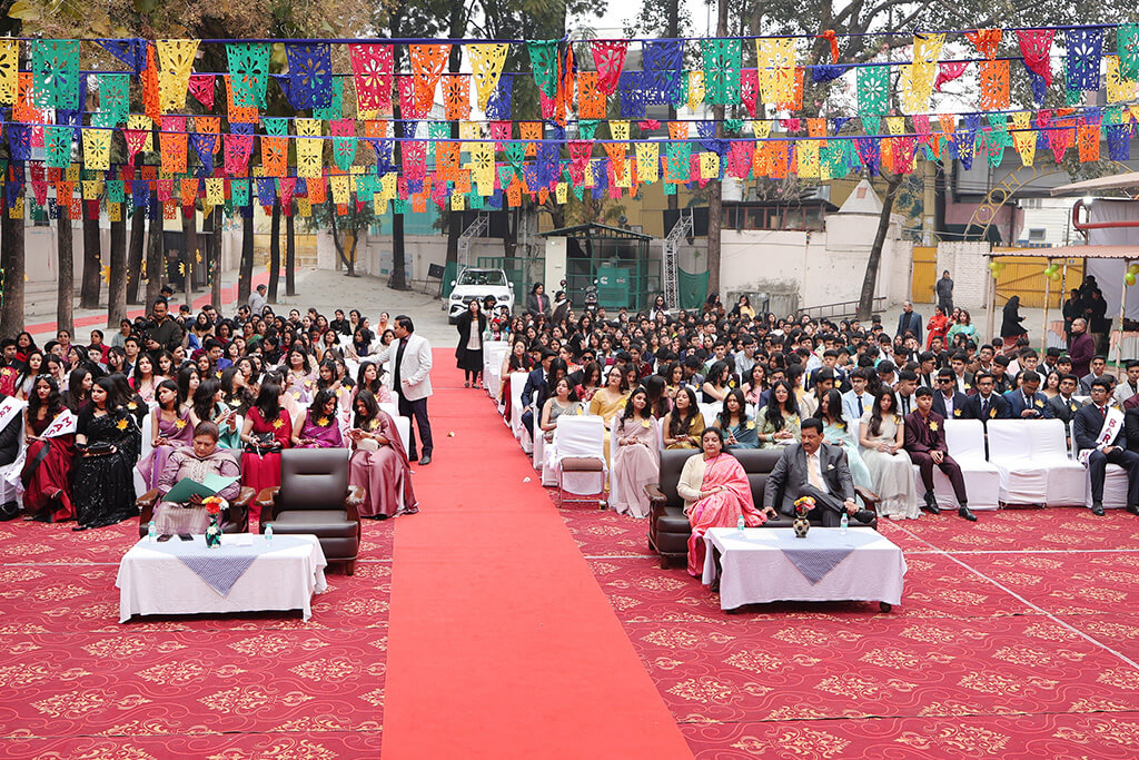 Excellence awards were announced by Principal Mrs. Pallavi Gupta. Mansi Khandurie was recognized for her outstanding oratory skills, while Dipanshi Joshi was honored for composing the school song. The prestigious titles of Miss Ann Mary and Mr. Ann Mary were awarded to Dipanshi Joshi and Shivansh Yadav, respectively. Various other titles were also presented, celebrating the unique talents and achievements of the passing out batch. In her address, Director Ms. Ankita Joshi warmly said, “As your batch name suggests, Rising Radiants, may you continue to shine brightly and illuminate every path you take in the future.”