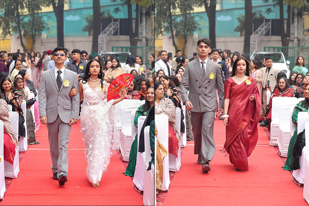 The program commenced with a prayer led by the Head Girl, followed by a soulful performance by the school choir, dedicated to the graduating students. The Class XII students then walked the ramp with confidence, reflecting the values and training instilled in them by the school. Both Class XII and Class XI students performed lively dance numbers, adding vibrance to the occasion.