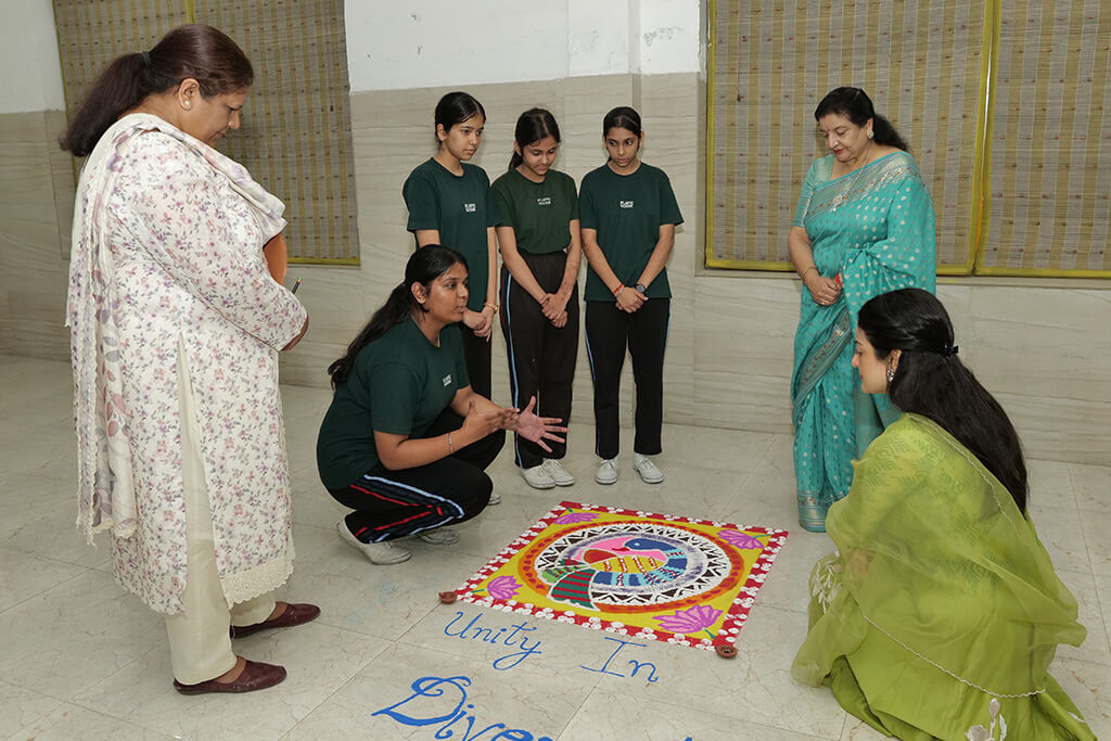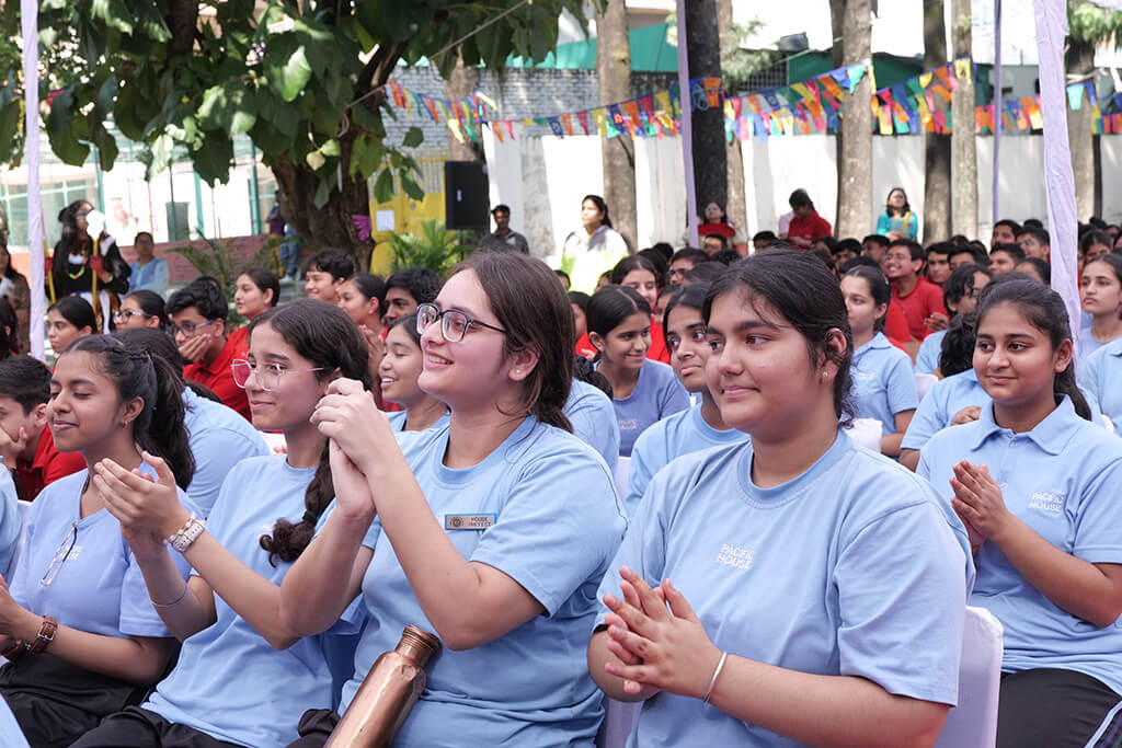 The final day of Cultural Week 2025 marked a memorable conclusion of creativity and competition. Senior school students participated in Rangoli, Softboard, Music, and Dance events. The Rangoli theme “Fusion of Art Forms” saw Indian House first, followed by Arctic. In Softboard, Atlantic and Arctic Houses won in Category I and II respectively, followed by Pacific House. Indian House topped both Music categories, while Arctic and Atlantic Houses excelled in Dance, followed by Indian House. Chairperson Mrs. Anuradha Joshi, Director Ms. Ankita Joshi, and Principal Mrs. Pallavi Gupta applauded all participants. Atlantic House lifted the Overall Trophy, with Indian House narrowly missing the title by a single point.